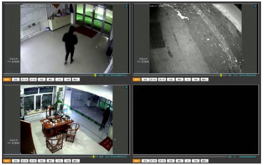 視(shì)頻(pín)比对,可(kě)以同時(shí)观看(kàn)多个視(shì)頻(pín),以多角度比较分析嫌疑目标在不同視(shì)頻(pín)中的信息。拖拽案件列表區(qū)的視(shì)頻(pín)到視(shì)頻(pín)比对界面的各个播放窗口,可(kě)看(kàn)到視(shì)頻(pín)被打開(kāi)播放,如(rú)下(xià)图所示:
