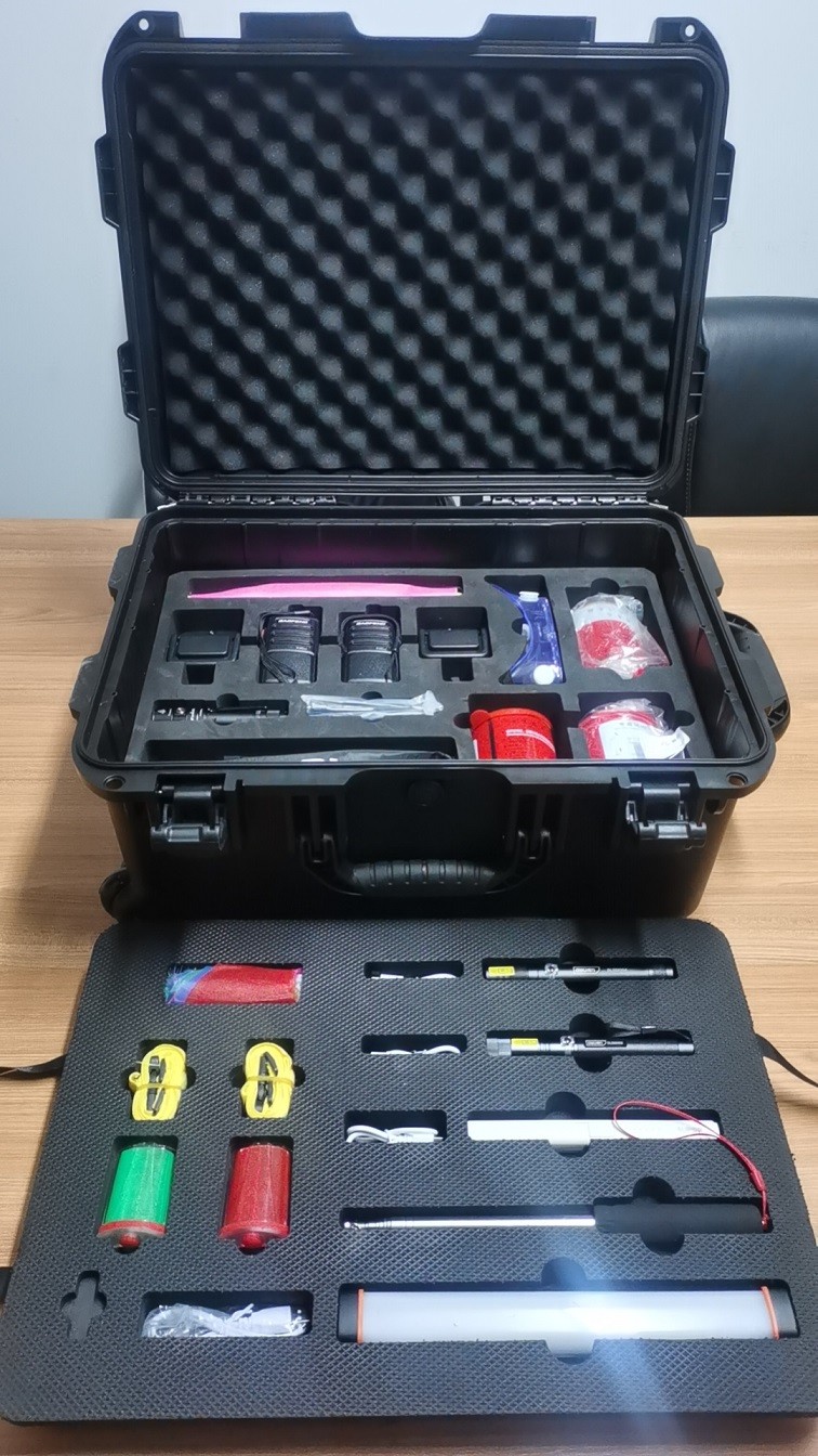 明(míng)景火(huǒ)调視(shì)頻(pín)勘验工(gōng)具箱是针对火(huǒ)调人(rén)員(yuán)火(huǒ)灾现场視(shì)頻(pín)模拟实验的工(gōng)具箱,包含視(shì)頻(pín)校正方位灯、視(shì)頻(pín)校正激光(guāng)筆(bǐ)、光(guāng)源校正模拟试验器、电火(huǒ)花模拟试验器、烟火(huǒ)源模拟试验器、定位标识物(wù)、对讲机等。具备多种不同光(guāng)源校正设备,具备模拟普通(tōng)光(guāng)源弱光(guāng)、强光(guāng)爆闪等不低(dī)于4档的变化功能(néng),便携式电火(huǒ)花发生装置可(kě)快(kuài)速模拟打火(huǒ)现象,火(huǒ)花亮度清晰可(kě)見(jiàn),帮助火(huǒ)调人(rén)員(yuán)快(kuài)速模拟还原火(huǒ)灾过程。